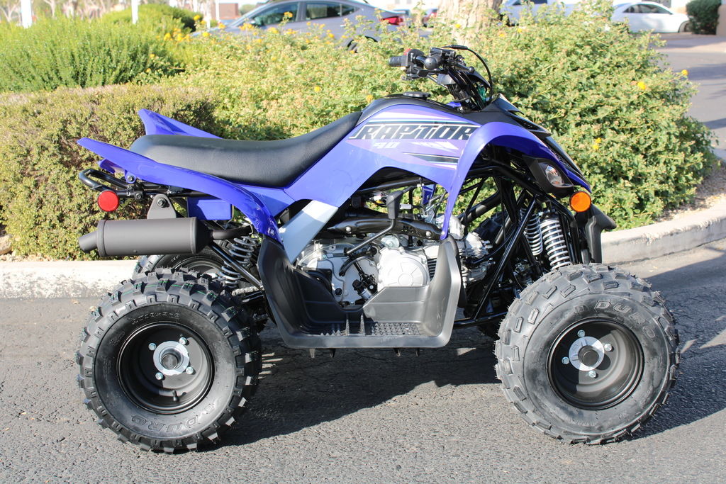 - YAMAHA RAPTOR DNA: For sporty looks and handling, the Raptor 90 uses low-profile Duro® tires on lightweight wheels and styling that’s unmistakably inspired by the mighty Raptor 700R.